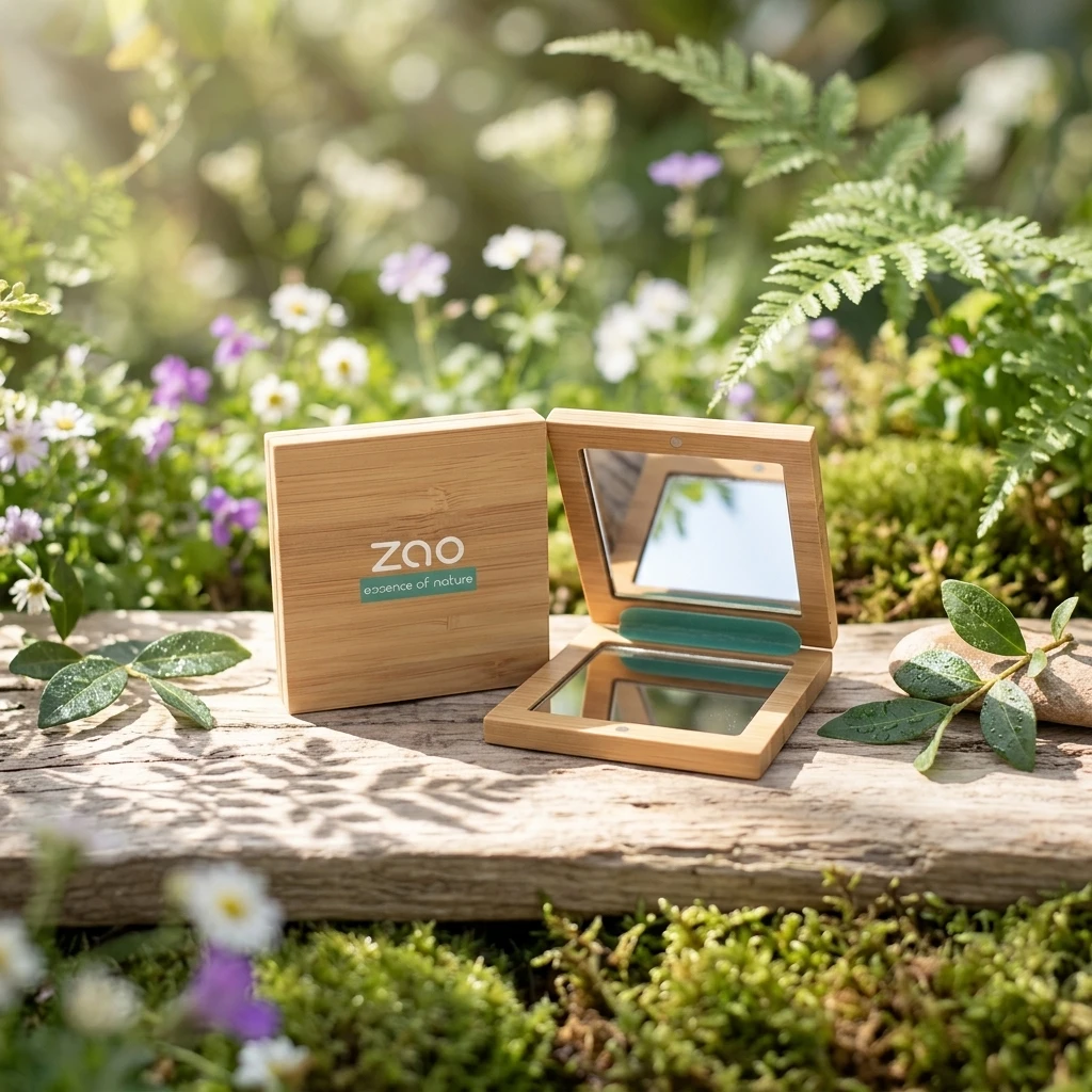 Bonito espejo de bambú doble ideal para llevar en el bolso y perfecto para pequeños retoques.
