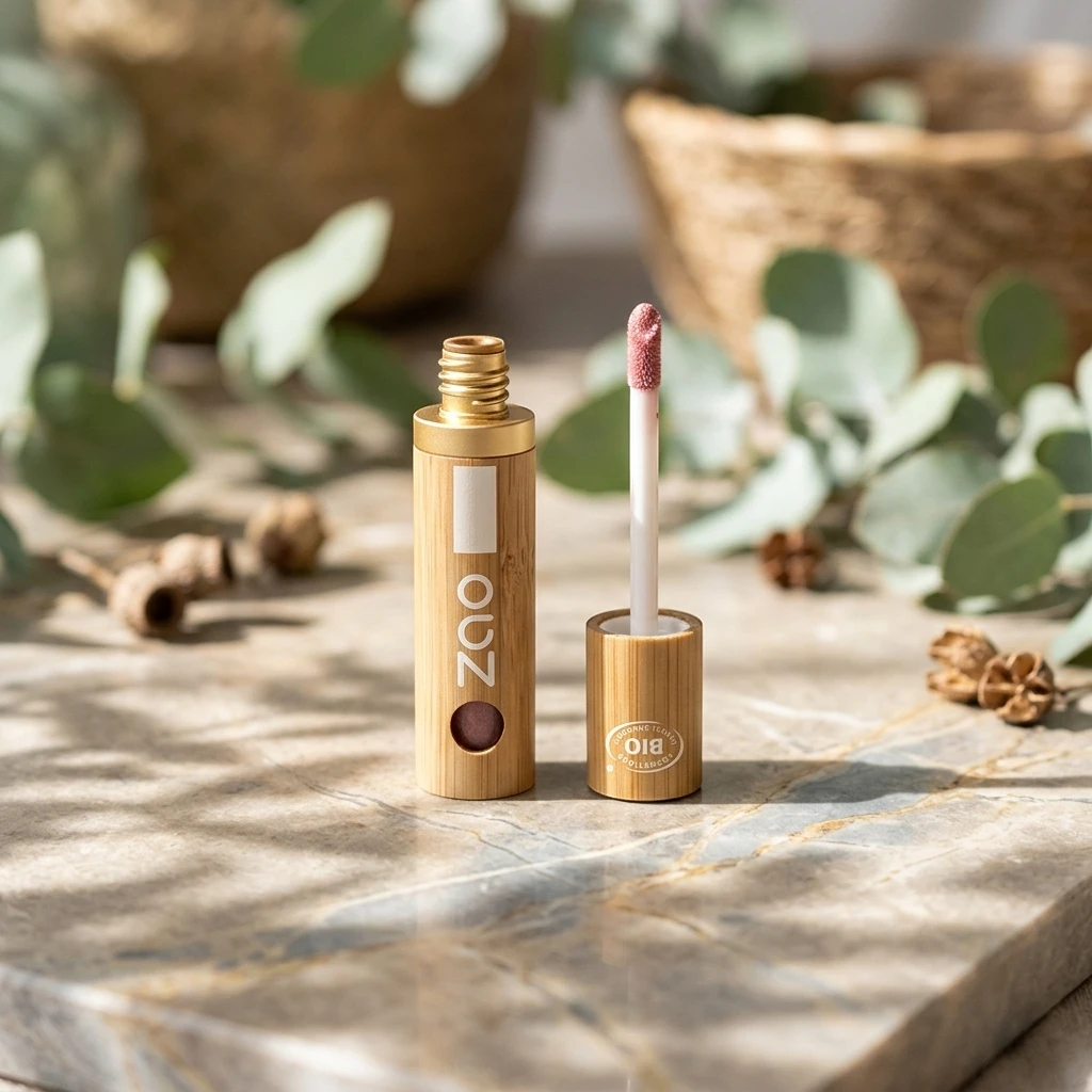 Labios brillantes, glamurosos y con volumen con el Gloss ecológico Terracota de ZAO. Disfrute de un confort absoluto con el Gloss ecológico Terracota gracias a una fórmula enriquecida con manteca de cacao orgánica.