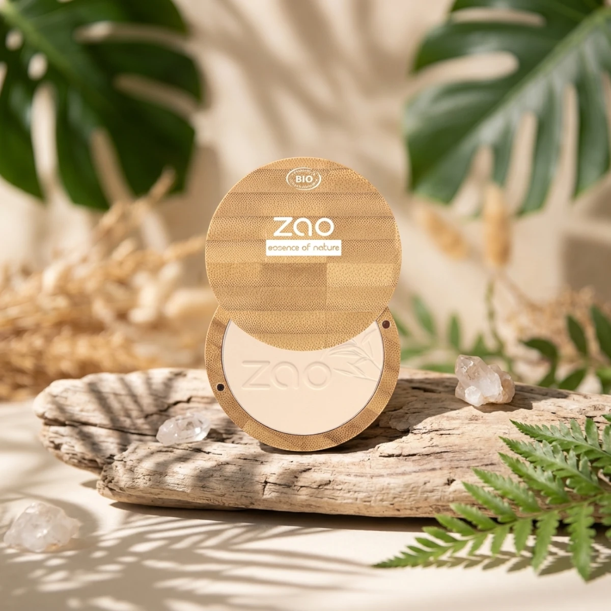 Esencial, el polvo compacto permite obtener un maquillaje uniforme y sin brillos, gracias a su alta capacidad de absorción de la grasa. Mantiene la piel suave y aterciopelada. Para un efecto matificante, aplicar el polvo compacto con el pincel para polvos ZAO. Para un efecto cubriente en pieles con problemas, aplique el polvo compacto con una esponja. En los dos casos, elige siempre el tono más adecuado a tu tono de piel y utilizar el producto directamente después de tu crema de día. Para un cutis perfecto después de la base de maquillaje, aplica el polvo compacto eligiendo un tono inferior al de su piel. Para obtener un resultado natural, utilice un pincel de polvos, para un efecto “Babydoll”, elija la esponja.